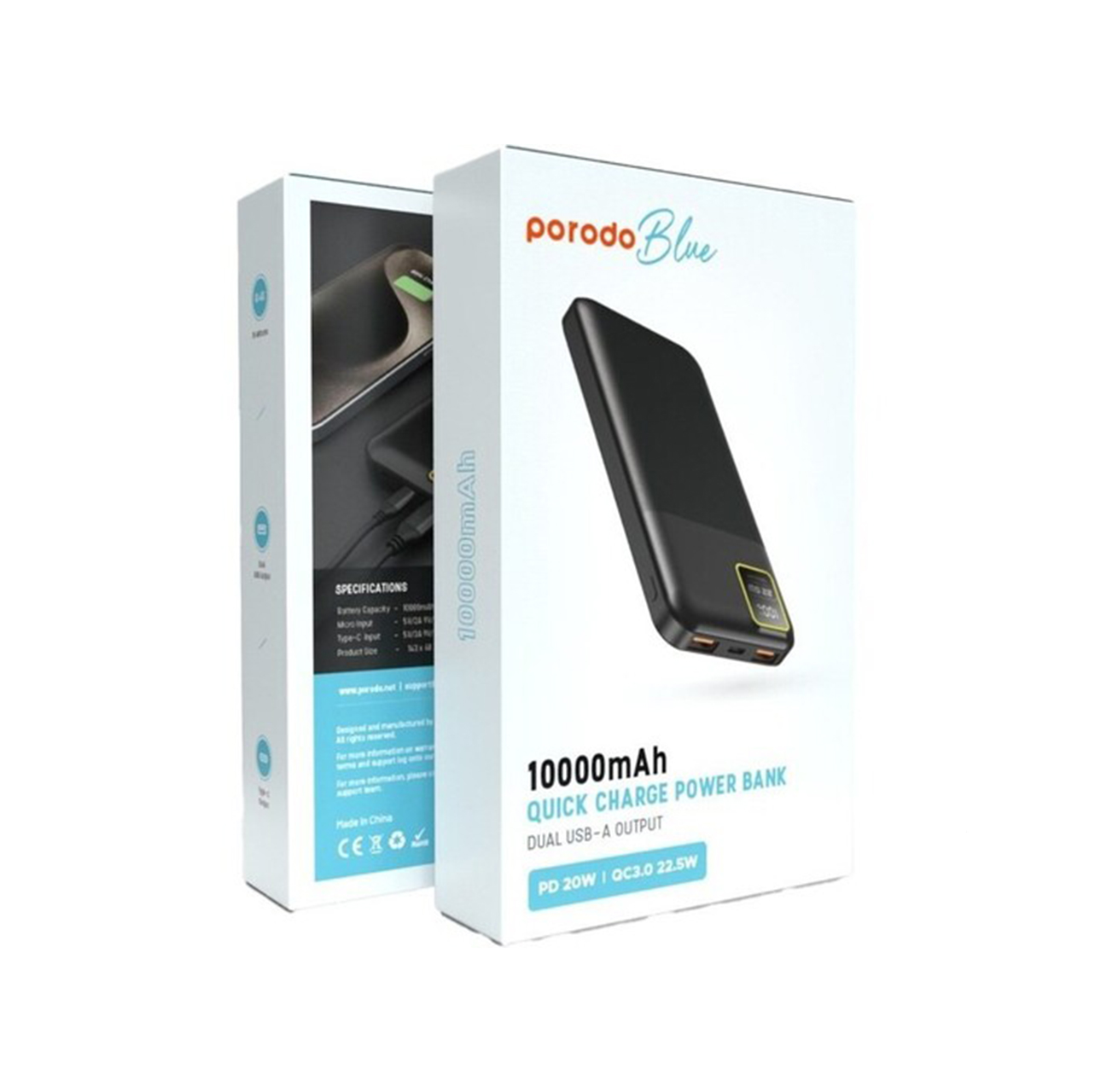 پاوربانک PORODO BLUE مدل PB-PBFCH054 ظرفیت 20000 میلی آمپر